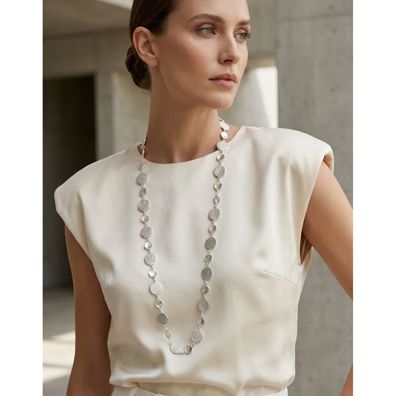 Envy Hammered Circle Long Necklace Silver