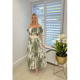 Lucy Cobb Bianca Bardot Maxi Dress Denim Blue