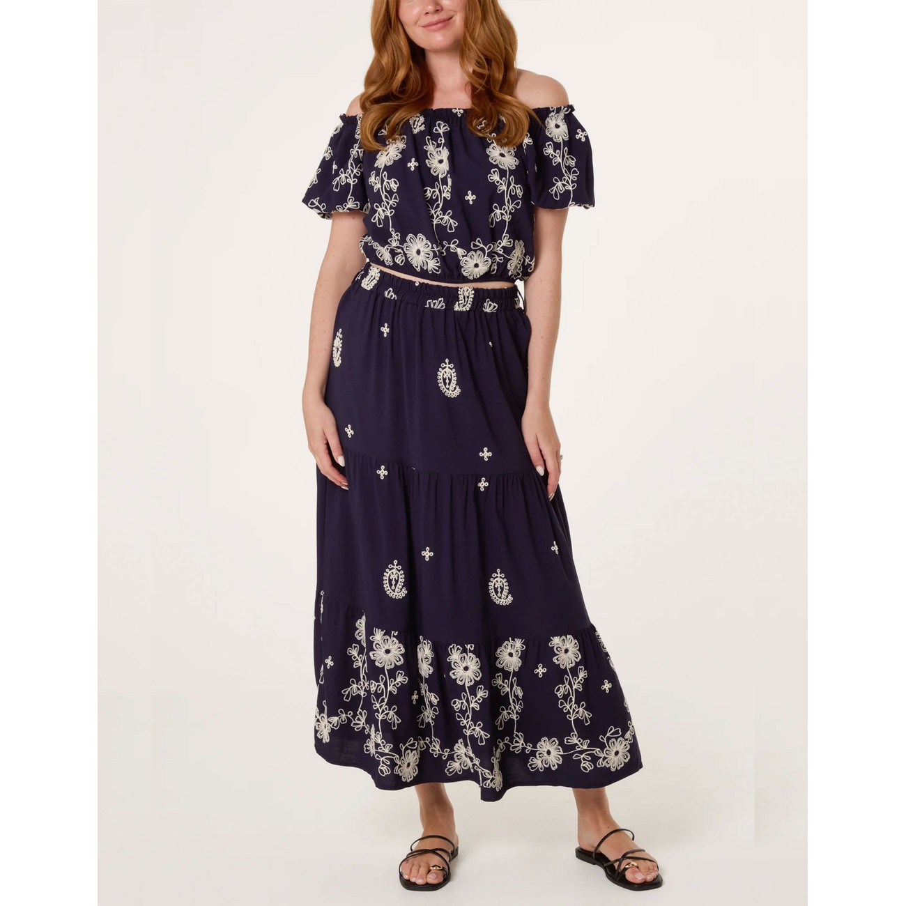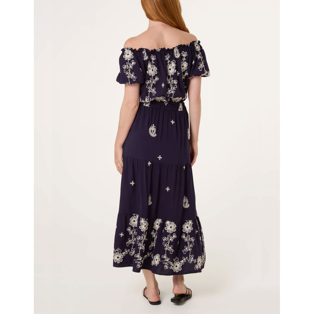 Lucy Cobb Embroidered Bardot Two-Piece Set Navy