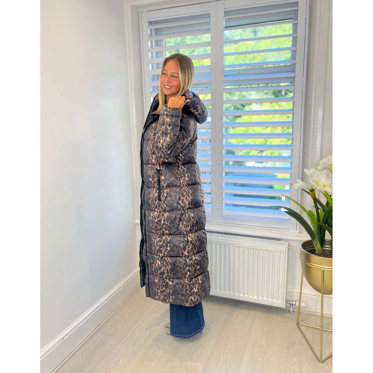 Normann Nadia Animal Print Longline Padded Coat Brown Animal Print